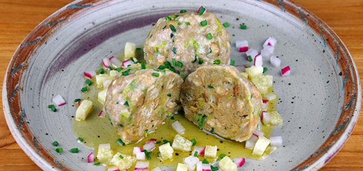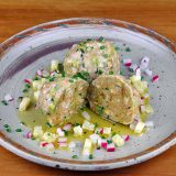 Buchweizenknödel – Schwarzplentene Knödel – mit Graukäse und Radieschen
