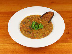 - Zum Abschluss mit einem Kochlöffel noch ein paar Mal kräftig durch die Suppe fahren.