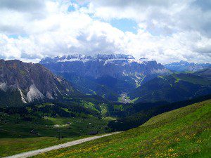 Blick von der Seceda-Bergstation auf die Sellagruppe.