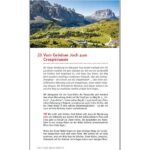 Jede Wanderung bietet nicht nur eine einfache Tourenbeschreibung, sondern enthält auch eine Wanderkarte, eine detaillierte Anfahrtsbeschreibung, Infos zu den Höhenmetern, der Weglänge und Schwierigkeit der Tour. Außerdem gibt es viele zusätzliche Infos zu Sehenswürdigkeiten und Interessantem am Weg und/oder der näheren Umgebung, eine kurze Beschreibung des Passes, Infos zu den Öffnungszeiten der Passstraßen sowie viele Einkehrtipps (Öffnungszeiten + Kontaktdaten).