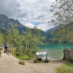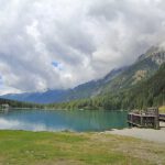Das Ufer des Antholzer Sees ist nur ein paar Meter von Restaurant Platzl am See entfernt. Von einer kleinen, ins Wasser hineinragenden Plattform kann man schöne Fotos vom See und den umliegenden Bergen machen. Danach kann man den Antholzer See auf dem ausgeschilderten Seerundweg mit oder gegen den Uhrzeigersinn umrunden. Wir entscheiden uns für eine Wanderung entgegen des Uhrzeigersinns.
