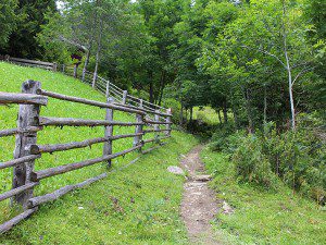 Auf einem schönen Waldpfad geht es in mäßiger Steigung bergan.