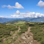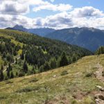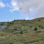Vom Gipfelkreuz folgt man nun dem bergab führenden Weg Nr. 12 („Kreuzwiesenhütte“), der genau auf die Plose zuläuft. An der nächsten Abzweigung biegt man links (Nr. 11) und etwa 10 Minuten später rechts ab (Nr. 12), immer der Ausschilderung „Kreuzwiesenhütte“ folgend.