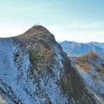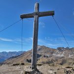 Der Anstieg zum Gipfel ist ein ganz klein wenig ausgesetzt, sollte aber auch für nicht ganz schwindelfreie Wanderer kein Problem darstellen. Auf dem kleinen Gipfelplateau mit hübschem Gipfelkreuz angekommen, kann man dann noch einmal ausgiebig das atemberaubende Bergpanorama betrachten.