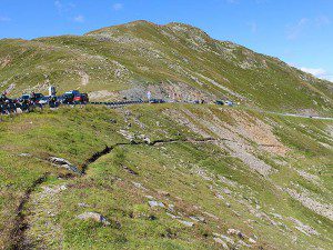 Der kleine Pfad startet beim Berggasthof und führt unterhalb der Straße entlang