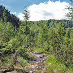 Man folgt bei der Wanderung zunächst der Forststraße (Weg Nummer 12 in Richtung Jaufenhaus). Nach ungefähr 5 Minuten biegt man links ab, überquert den Schluppesbach und folgt Weg Nummer 16 (Mittagsspitz). Alternativ kann man den Schluppesbach auch ein paar Meter vor dem Wanderschild über eine kleine Brücke überqueren.