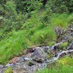 Nach der Forststraße geht es die nächsten 20 bis 25 Minuten weiter auf einem schmalen Pfad bergauf, bis man erneut die Forststraße erreicht. Den Weg muss man sich manchmal ein wenig suchen, aber da es immer nur bergauf geht, kann man sich auch nicht verlaufen. Man kreuzt auf diesem Abschnitt mehrmals einen Bach. Sobald man die Forststraße erreicht hat, biegt man links ab, bleibt etwa 5 bis 10 Meter auf der Straße und biegt dann sofort rechts ab.