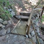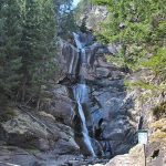 Hinter dem Becken folgt man rechts dem bergauf führenden Pfad. Man kommt dann noch an einem weiteren Becken vorbei, in das man seine Arme tauchen kann und steht dann etwa 40 Minuten nach Beginn der Wanderung vor dem Unteren Barbianer Wasserfall. 85 Meter fällt hier das Wasser in die Tiefe, eigentlich…