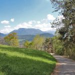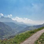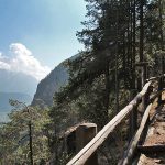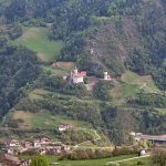 Danach folgt man weiter der durch Barbian führenden Fahrstraße und der Markierung Wasserfallweg, hat also die Kirche nun im Rücken. Der Weg führt leicht bergauf, links hat man einen schönen Ausblick ins Tal und auf Berge wie den Puflatsch und den Schlern. Außerdem kann man von hier oben sehr gut die Trostburg erkennen, die etwas oberhalb von Waidbruck liegt.
