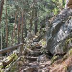 Tipp: Wenn es geregnet hat, kann dieser Pfad, der zum Teil recht steil bergab führt, rutschig sein. Alternativ kann man dann natürlich auch der Fahrstraße folgen.