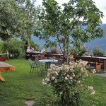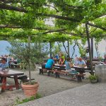 Der Buschenschank, der direkt neben Schloss Lebenberg liegt, bietet einen hübschen Innenbereich und einen wirklich herrlichen Außenbereich. Von dem schön gestalteten Außenbereich, bei dem rustikale Tische und blühende Pflanzen das Bild dominieren, hat man einen fantastischen Blick ins Etschtal. Bei gutem Wetter kann man von zum Beispiel bis zum weit entfernten Weißhorn und Schwarzhorn am Jochgrimm sehen.