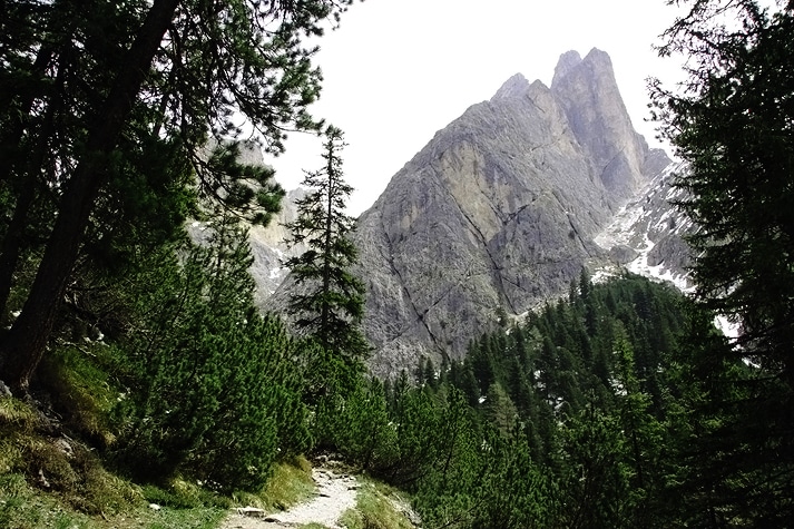 Auf dem Weg zum Bärenloch kommen die mächtigen Dolomitengipfel immer näher.