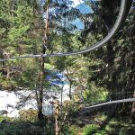 Der Einstieg in die Fly-Line befindet etwas oberhalb des 3. Reinbach-Wasserfalls. Mit etwa 10 km/h fährt man dann zum Teil in luftiger Höhe zwischen Bäumen hindurch bis zum Ausstieg, der sich auf Höhe des 1. Reinbach-Wasserfalls befindet. Zum Abschluss der Fahrt überquert man den Reinbach und bekommt noch einmal einen traumhaften Blick auf die umliegenden Berge.