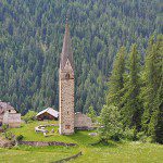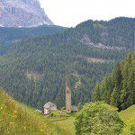 Ein außergewöhnliches Fotomotiv für alle, die im Südtirol-Urlaub gerne fotografieren, befindet sich im Gadertal oberhalb von Wengen: Ein Kirchturm ohne Kirche…