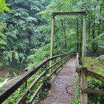 Auf dem Hinweg geht es wieder zurück. Hinter der ersten Brücke – vom Wasserfall aus gesehen – liegt ein hübscher Rastplatz. Außerdem befindet sich hier auch eine – leicht zu übersehende – Skulptur.