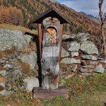 Wenn man mit dem Rücken vor der Eingangstür des Naturparkhauses steht, folgt man dem kleinen Pfad auf der anderen Straßenseite für ein paar Meter und biegt dann links ab. Man befindet sich jetzt schon auf dem Kreuzweg.Entlang des sogenannten Kaserner Kreuzwegs befinden sich überdachte Holzsäulen mit geschnitzten Reliefs, die die Leidensgeschichte Jesu darstellen. Diese Holzsäulen wurden von katholischen Jugendgruppen und Schülern der Schnitzschule in St. Jakob gestaltet.