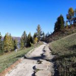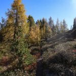 Viele Wege führen auf den Helm. Und auch bei der Seilbahn, die einem zum Ausgangspunkt der Wanderung bringt, kann man wählen. Wahlweise nimmt man die Kabinenbahn in Vierschach oder den Helmjet in Sexten. Oben angekommen, geht man zum Helm-Restaurant und folgt dem mit Holzscheiben verzierten Weg Nr. 20 („Helm“) in Richtung Nordosten, biegt also auf Höhe der Terrasse des Restaurants links ab. Mit Blick aufs Pustertal und auf die umliegenden Berge wandert man nun durch einen lichten Lärchenwald und später über einen strauchigen Hang stetig bergauf.