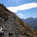 Man erreicht schließlich einen Sattel, biegt hier links ab (kein Schild) und folgt dem Steig, der sich gut sichtbar nach oben schlängelt. Jetzt folgt der beschwerlichste Teil der Wanderung auf den Helm. Zum einen geht es jetzt steiler bergauf, zum anderen wird der Weg bald deutlich felsiger. An manchen Stellen muss man fast schon klettern.Nach 20 bis 30 Minuten liegt dieses Wegstück dann hinter einem. Aber: Hier kann Trittsicherheit und Schwindelfreiheit (leicht ausgesetzte Stellen) nicht schaden.