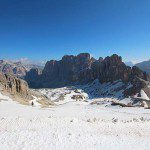 Schöner und vor allen Dingen aussichtsreicher ist es aber, zur Talstation hinunter zu wandern. Dafür geht es zunächst wieder zurück zur Bergstation. Hier könnte man jetzt vor dem Abstieg noch eine Rast auf der schönen Lagazuoi-Hütte einlegen. Von der Hütte folgt man dem gut sichtbaren Wanderweg (im Winter ist hier eine Skipiste), der abwärts und in Serpentinen über die Nordseite des Berges hinunterführt. Wer die Wanderung – so wie wir – recht früh macht, also schon Anfang Juni, wird von einem Weg dagegen nicht viel sehen. Auf der Nordseite des Berges hält sich der Schnee recht hartnäckig, hier hilft es dann nur, sich seinen Weg über den breiten Bergrücken selbst zu suchen.