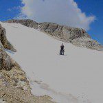 Solange der Schnee nicht vereist ist, ist das Wandern auch über große Schneefelder kein Problem – ansonsten sollte man sich hier nur mit der entsprechenden Ausrüstung an den Abstieg machen. Bei Schneefeldern ohne Eis ist es wichtig, das man beim Abstieg wirklich einen Schritt nach dem anderen macht und das Gewicht auf die Hacken verlegt, um Rückenlage zu bekommen. Alternativ kann man auch die Hacken richtig fest in den Schnee hauen und sich so einen festen Stand sichern.