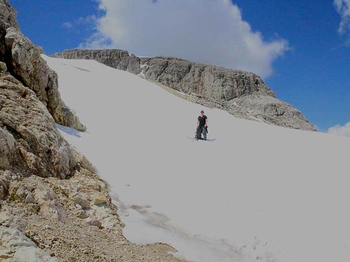 Abstieg mit viel Schnee (Anfang Juni)