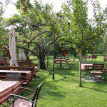 Bedient wird man hier mit der gewohnten Südtiroler Freundlichkeit, sitzen kann man bei schönem Wetter in dem riesigen Restaurantgarten, aber auch die Stube im Inneren des Gasthofs ist sehr gemütlich.