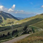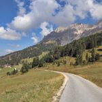 Nach etwa 15 Minuten kann man wahlweise an der Zischgalm oder der Ganischger Alm einen Stopp einlegen. Sobald man auf die asphaltierte Straße (für den motorisierten Verkehr gesperrt) trifft, biegt man rechts ab (Nr. 505, „Reiterjoch“). Mit dem Latemar zur Rechten und Zanggen & Co. zur Linken wandert man nun durch eine malerische Almenlandschaft.
