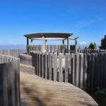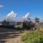 Gut 5 Minuten später erreicht man einen weiteren beeindruckenden Aussichtspunkt in Südtirol, das Eggentaler Bergkino Obereggen. Hierbei handelt es sich um einen als Freiluftkino gestalteten Aussichtspunkt. Von diesen gibt es im Eggental mittlerweile sechs (ein weiteres beschreiben wir im Beitrag Latemarwiesen und Eggentaler Bergkino). Weiter geht es auf dem nur mäßig ansteigenden Panoramaweg, dessen Erlebnisstationen viel Wissenswertes rund um das Thema Latemar erzählen.