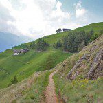 Auf einem schmalen Steig geht es jetzt noch einmal ein gutes Stück bergauf (etwa 70 Höhenmeter), wird aber bald relativ eben. Es geht am Bergbauernhof Innerforch vorbei, ein paar Minuten später erreicht man eine Verzweigung. Hier folgt man dem bergab führenden Weg (der nicht ausgeschildert ist). Jetzt geht es ein ordentliches Stück bergab. Man kommt noch an der Aussichtsplattform Unterstell vorbei (scharf links abbiegen). Diese liegt etwa zehn Minuten von der Bergstation Unterstell entfernt. Von der im Jahr 2015 errichteten Aussichtsplattform hat man einen fantastischen Ausblick in den Vinschgau.