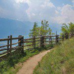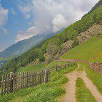 Die nächste halbe Stunde wandert man auf dem Meraner Höhenweg im leichten auf und ab durch eine herrliche Landschaft. Danach stößt man auf eine Fahrstraße und folgt dieser bergauf, geht also geradeaus weiter. Auf der mäßig bergauf führenden Fahrstraße bleibt man etwa 10 Minuten. Danach biegt man links wieder auf einen Pfad ab und folgt weiter der Ausschilderung Meraner Höhenweg.