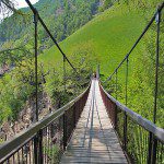 Der Weg führt jetzt wieder mitten durch Almwiesen hindurch. Man verlässt nach wenigen Minuten die Fahrstraße und wandert auf einem Pfad weiter. Man passiert eine hübsche Mühle und erreicht kurz darauf eine beeindruckende Hängebrücke. Nach der Brücke gibt es mit der Jausenstation Galmeinhof eine weitere Einkehrmöglichkeit.