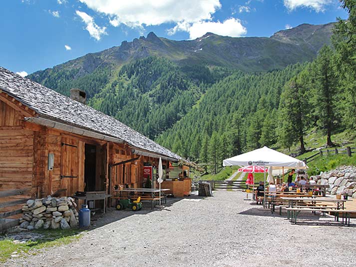 Die Neves Alm ist eine schöne Einkehrmöglichkeit am Neves-Stausee, der am Talschluss des Mühlwalder Tals in Südtirol liegt. Außerdem kann man hier auch leckeren Käse kaufen, der direkt auf der Alm hergestellt wird.