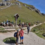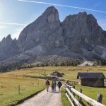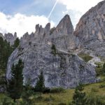 Kaum gestartet, kommt man an der Cir-Hütte vorbei. Kurz danach bekommt man einen prachtvoller Ausblick auf den Petlerkofel, bei dem man die die unterschiedlichen Gesteinsschichten sehr gut erkennen kann. Man passiert ein Südtiroler Naturdenkmal, das Serighela-Moos. An einer Weggabelung befindet sich mit der Hütte Sot Pütia eine weitere Einkehrmöglichkeit. Hier hält man sich rechts (Nr. 8A) und wandert jetzt entspannt über die grünen Almwiesen des Naturparks Puez-Geisler.