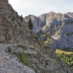 Wenn man den Almgasthof Ütia de Börz (Würzjochhütte) im Rücken hat, wechselt man die Straßenseite und hält sich dann rechts. Man folgt nun dem leicht bergauf führenden Weg (Nr. 8A, „Peitlerscharte“). Die beeindruckenden Nordwände des Peitlerkofel liegen genau neben uns.
