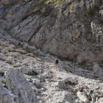 Gegenüber sieht man die Graskuppe des Maurerbergs (auch ein schöner Aussichtsberg!). An der nächsten Abzweigung geht man weiter geradeaus. Ein Schild informiert darüber, dass man nun auf dem Dolomiten-Höhenweg 2 unterwegs ist. Die nächsten 30 bis 45 Minuten (je nach Kondition) werden anstrengend. Über einen felsigen Steig geht es steil hinauf zur Peitlerscharte (Furcela de Pütia). Diese liegt auf 2357 Meter, damit hat man den höchsten Punkt der Wanderung erreicht.