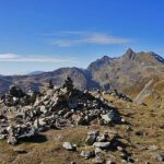 Man überschreitet den kleinen Gipfel mit seinen vielen Steinmännchen und folgt dem Steig, der vom Gipfel aus in nordwestlicher Richtung in eine kleine Senke führt. Nun muss man ein wenig aufpassen und den Blick auf den Boden richten. Sonst kann es leicht passieren, dass man die Abzweigung verpasst.