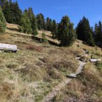 Nachdem man an zwei kleinen Hütten mit Wassertrog vorbeigekommen ist, erreicht man schließlich die Baumgrenze. An einer Abzweigung hält man sich links (Nr. 66, „Sambock“) und ist jetzt auf dem Pfunderer Höhenweg unterwegs. Über Gras- und Heidehänge steigt man bis zur Kammhöhe unterhalb des Sambock auf.