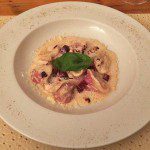 Wer sein Urlaubs-Budget schonen will, kann für um die 10 Euro aus einer Vielzahl an Pizzen wählen, die günstigste Pizza gibt es bereits für 6,50 Euro. Pasta-Gerichte, die es sowohl als kleine als auch große Portion gibt, fehlen auf der Karte ebenfalls nicht. Hier muss man für eine Hauptspeisen-Portion zwischen 10 und 15 Euro einplanen. Dafür gibt es dann aber neben Schlutzkrapfen auch so außergewöhnliche Kreationen wie Kartoffel-Tortelloni mit Rohnenfüllung (lecker!). Da regional und saisonal gekocht wird, wechselt das Speisenangebot regelmäßig.