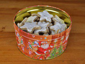 In einer Blechdose sind die Zimtsterne ein paar Wochen haltbar. Für die hier angegebene Menge braucht man 2 Backbleche. Damit die Plätzchen wirklich gelingen, sollte man sie nacheinander backen.