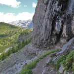 Man wandert nun auf etwa eine halbe Stunde auf einem aussichtsreichen und relativ ebenen Panoramaweg um den Langkofel herum. Danach gibt es einen kurzen, aber anstrengenden Anstieg. Oben angekommen, biegt man rechts ab und wandert jetzt auf der anderen Seite des Langkofels weiter.
