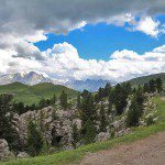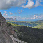 Bei der Langkofelhütte biegt man rechts ab und folgt dem Weg Nummer 526 in Richtung Comici und Sellajoch. Etwa fünf Minuten später biegt man rechts ab und folgt weiter Weg 526. Bei diesem Wegabschnitt hat man einen herrlichen Ausblick auf die Seiser Alm und auch der Schlern präsentiert sich hier von seiner schönsten Seite.