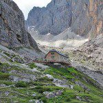 Nach einem letzten Anstieg erreicht man die bewirtschaftet Comici-Hütte. Diese liegt zum einen direkt am Fuße des Langkofels, zum anderen gegenüber des mächtigen Sellamassivs. Ein Stopp lohnt sich hier also auf jeden Fall, auch wenn es sicher Hütte mit einem größeren und günstigeren Speisenangebot gibt. Dafür ist der Ausblick von der riesigen Sonnenterrasse einfach unbeschreiblich schön.