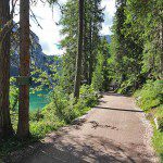 Danach geht es über einen zum Teil wurzeligen Pfad bergab, bis man wieder auf Höhe des Sees ist. Der Rest der Wanderung kann man gemütlich am Ufer des Pragser Wildsee entlangspazieren, , bis man die erneut die Promenade auf der Nordseite erreicht.