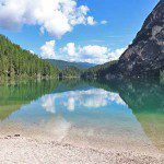Am Südufer, also direkt unterhalb des Seekofel, hat man dank der flachen Kiesstrände ganz bequem die Möglichkeit, ein paar Meter ins Wasser zu gehen. Die Wassertemperatur bleibt aber auch im Hochsommer relativ kalt und lädt nicht zum Schwimmen ein.
