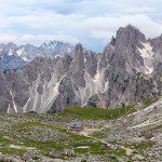 Nachdem man ungefähr eine halbe Stunde auf dem hier nahezu ebenen Wanderweg dahin geschlendert ist – dabei kommt man auch an einer kleinen Kirche vorbei – erreicht man auch schon die nächste Hütte, das Rifugio Lavaredo. Besonders imposant ist hier die Aussicht in Richtung Süden und Westen, wo sich ein mächtiger Dolomitengipfel an den nächsten reiht.