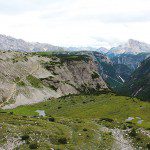 Dieser Weg ist gut ausgebaut, lässt sich problemlos gehen und bietet die ganze Zeit über fantastische Ausblicke auf die Drei Zinnen. Gut zwanzig Minuten später kommt man an die nächste Verzweigung. Der bergauf führende Weg bringt einen nach ungefähr zehn Minuten zur Drei-Zinnen-Hütte. Diese ist aber bei gutem Wetter immer sehr voll, weshalb man hier auch gleich den bergrunter führenden Weg Nummer 105 nehmen (diesem dann auch immer weiter folgen) und die Rast bis zur nächsten Hütte verschieben kann.