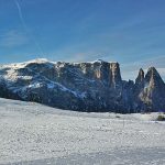 Im Winter kann man das schöne Schlern-Panorama am besten beim Skifahren auf der Seiser Alm genießen.