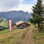 Der wahrscheinlich schon gut gefüllte Handyspeicher muss hier noch ein paar Bilder aufnehmen. Danach geht es hinüber zum Bergrestaurant Puflatsch. Vor der Hütte zweigt links der Weg zurück nach Compatsch ab. Auf einem schmalen Pfad wandert man jetzt über die schönen Wiesen der Seiser Alm steil bergab, dabei kommt man noch an der urigen Tschötsch-Alm vorbei. An einer Abzweigung biegt man links ab und kehrt auf dem Hinweg zur Bergstation zurück.