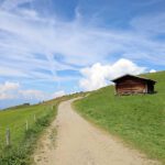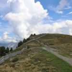 Nach etwa ½ Stunde kommt man an der Puflatschhütte vorbei und wandert weiter auf breitem Weg durch eine zauberhafte Almlandschaft. Bald wird der Weg schmaler, dafür geht es jetzt aussichtsreich am Rand der Anhöhe entlang. Im Tal kann man zum Beispiel Kastelruth und Lajen liegen sehen. Man kommt an einem Wetterkreuz mit Sitzbankgruppe vorbei und sieht gleich danach die Arnika-Hütte vor sich liegen. Kurz vor der Hütte zweigt links Weg Nr. 24 („Hexenbänke“) ab, dem man ab jetzt folgt. Es geht leicht bergauf zum Aussichtspunkt Gollerspitz mit seinem schönem Holzkreuz und weiter zu den mystischen Hexenbänken, einem Südtiroler Naturdenkmal.