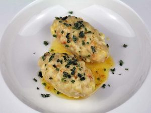 - Die Nocken mit den braunen Butter übergießen, etwas Schnittlauch darüber streuen und sofort servieren.